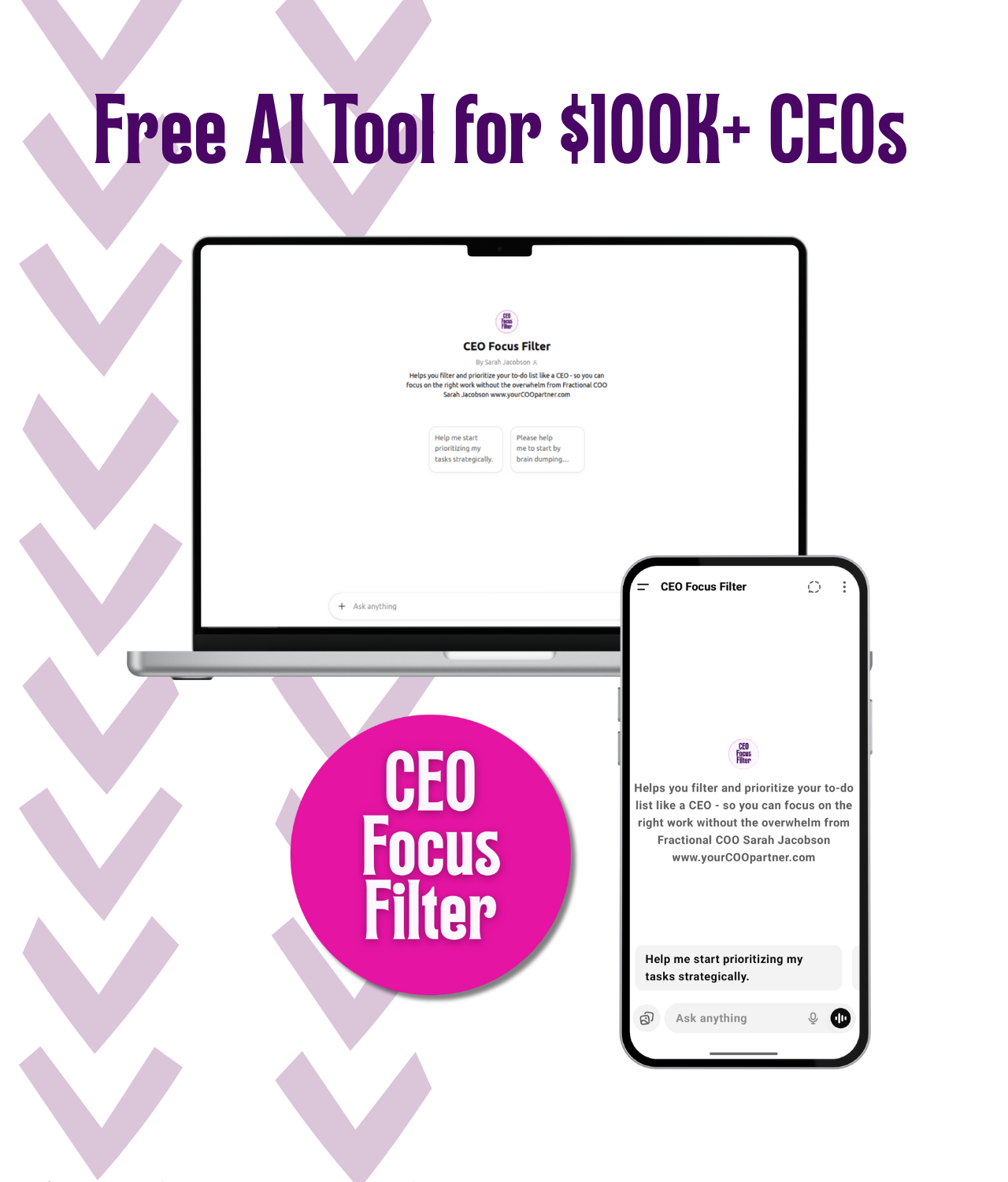 Run my CEO Focus Filter - the 5-minute AI tool that shows $100K+ CEOs exactly what to drop, what to keep, and how to lead like a strategic CEO.